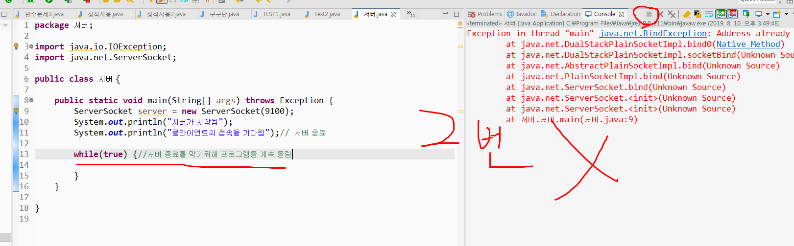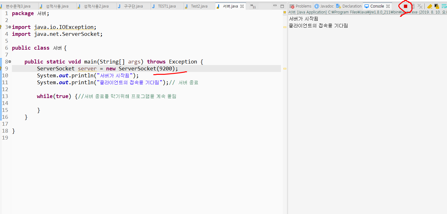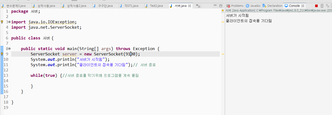 1) 서버 만들기 9100포트로 시작