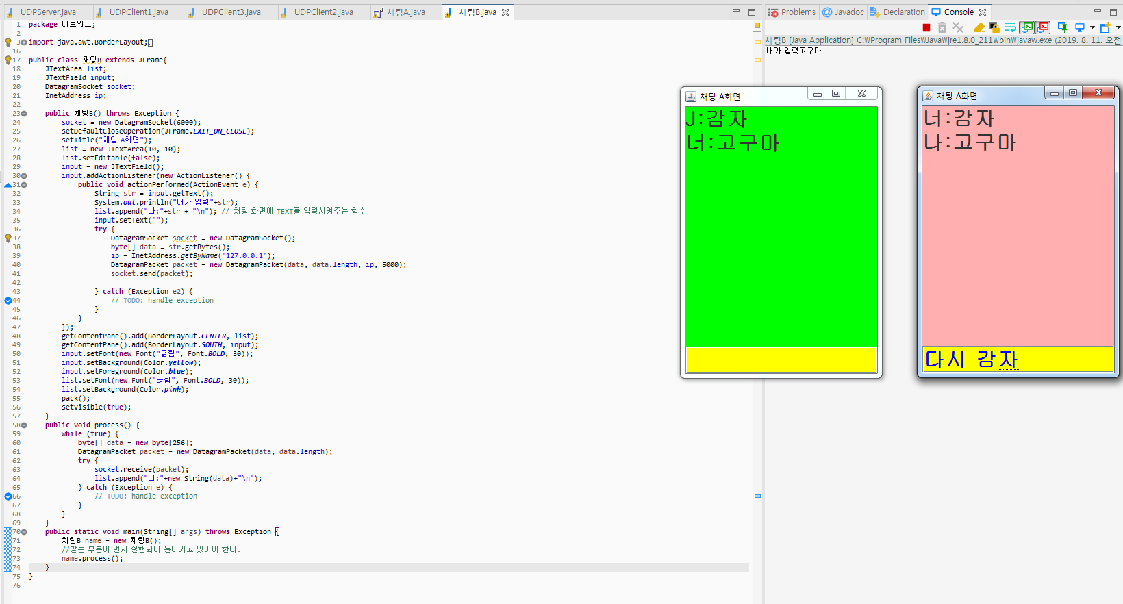 - 서버 먼저 실행 후 클라이언트 실행