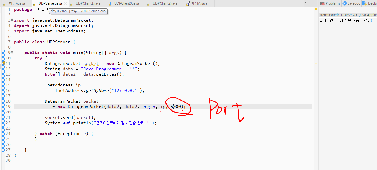 - 클라이언트 실행 후 서버로와서 다시 실행