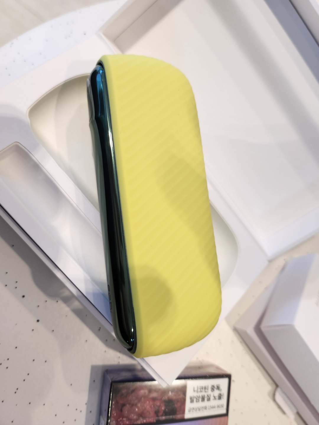 노란색 케이스를 낀 모습니다.